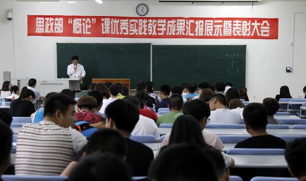 这是自2005年高校思想政治理论课“05方案”实施以来,我校首次对思政课实践教学优秀成果进行表彰和汇报展示,主题是“理论作旗帜 实践见真知”。此次思政课程优秀实践教学成果评选针对本学期开设“概论课”的2014级非生物类专业学生开展,学生们组成5-6人的实践小组,在思政部教师的指导下,围绕教育、学习、法制、民生等内容开展实践调查研究,获奖成果经“概论课”全体老师集体讨论研究决定。最终,来自人文社会科学学院、工程学院和会计学院的6个实践小组获得一、二、三等奖,获奖学生31人,其中人文学院社工14级张骜小组的《大学生对食堂满意度调查报告》获一等奖。其它成果包括《大学生闲暇时间利用情况调查报告》、《大学生法律意识调查报告》、《迈开长征脚步 展开红色之旅》、《大学生宗教信仰调查报告》、《谈高考改革》。