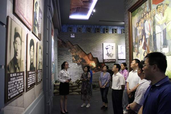 认真聆听梧桐河农场抗联博物馆讲解员介绍英雄事迹