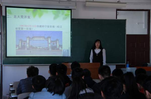 本学期,“北大荒精神”通过《思想道德修养与法律基础》课程的第二章“弘扬中国精神、共筑精神家园”正式进入我校大学生思政课堂教学。本章的教学设计主要是以北大荒精神为例,深度诠释“中国精神是民族精神与时代精神的统一”,案例式解读以爱国主义为核心的民族精神的时代内涵。