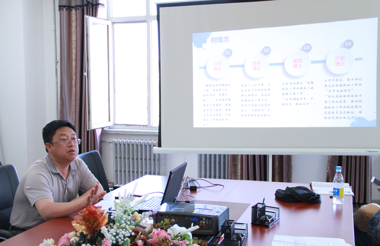 思政部主任陈彦彦向与会教师通报了学校上半年的11项重点工作情况,要求教师在全校迎接审核评估、筹备建校60周年等大的校情背景下既要守土有责,讲好思政课,又要按照学校总体布置做好各项工作。并以思政部师资队伍建设为切入点从三个方面总结了部门当前现状:一是部门教师群策群力,整体工作状态平稳、稳中有进;二是部门在科学统筹规划前提下创造条件和机会鼓励教师外出交流培训,贯彻国家对思政课教师培训要求,提升教师格局视野;三是对思政课教师职称问题结合最新文件分析了形势,鼓励教师秉持积极的心态,全面做好自我提升,通过不断加强自我内涵素质适应形势需要。要求教师扩大思路、开阔视野,努力做好学历提升。最后重点强调了近期“黑龙江省高校思想政治理论课教师北大荒精神社会实践研修基地”落地论证进展和审核评估工作。