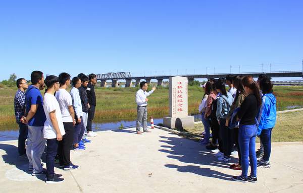 2017年1月,教育部下发文件,要求全国各级教育主管部门将教材中的“八年抗战”字样一律改为“十四年抗战”。从今年9月1日起,“十四年抗战”历史教材在全国投入使用。“十四年抗战”的提法,还原了抗日战争的历史全貌,有利于人们全面把握抗战的发展历程,正确评价中国人民抗日战争在世界反法西斯战争中的历史地位,有利于对全体国民特别是广大青少年进行系统的爱国主义历史教育。1937年的“七七事变”,国人家喻户晓,而早于卢沟桥抗战6年的“江桥抗战”、“中国军队有组织、具规模的抗战第一仗”,却少为人知。思政部此次组织大学生来到江桥抗战遗址开展实践教学,就是为了更好的触摸历史、更加鲜活的讲好中国的抗战故事,在广大青年学生中牢固树立“十四年抗战”的概念认同。“子在川上曰:逝者如斯夫,不舍昼夜。”86年时光飞逝,滔滔江水奔流不息,黄沙漫滩,人事代谢,草木枯荣。战争的硝烟早已散去,战地的遗迹也几近湮灭,仅剩一截露土半尺、被铁栅栏围起的原嫩江桥木桩,一座被蒿草包围的斑驳“炮楼”。恰有大雁在征,羽翼匆匆,长鸣于空。历史不能忘却,时间会在心头镌下深刻的爱国情。站在岸边土崖上眺望辽阔山河,2016级飞行专业的张勃辰同学觉得历史并不遥远,感动就在身边。“以往学习历史知识都是在书本里、课堂上,这次来到抗战英烈们铁血鏖战、保家卫国的地方,身临其境,心情格外激动。今后一定要努力学习、奋发有为,为实现中华民族的伟大复兴贡献自己的力量。"习近平总书记强调,高校思想政治工作,要因事而化、因时而进、因势而新。要教育引导大学生正确认识世界和中国发展大势,正确认识中国特色和国际比较,正确认识时代责任和历史使命,正确认识远大抱负和脚踏实地,不断坚定中国特色社会主义道路自信、理论自信、制度自信、文化自信。思想政治工作始终是我校党的建设工作的重中之重,贯彻落实全国和全省高校思想政治工作会议精神,是今年学校党委的重要政治任务。